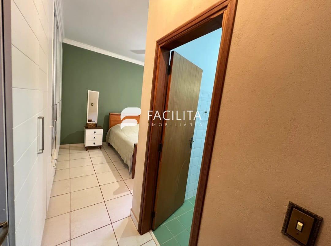 O banheiro social, o lavabo e a ampla área de roupeiro complementam os espaços íntimos.