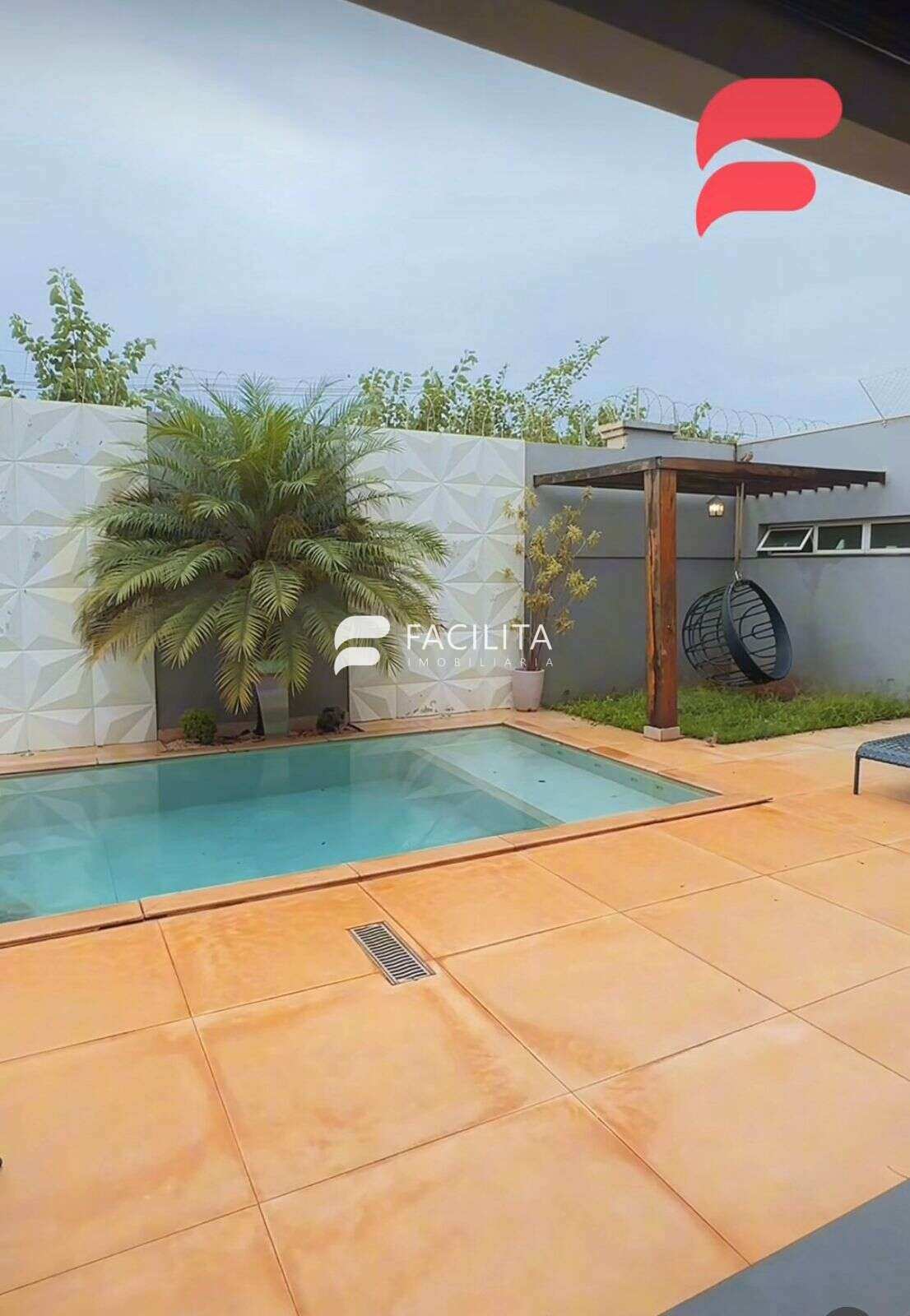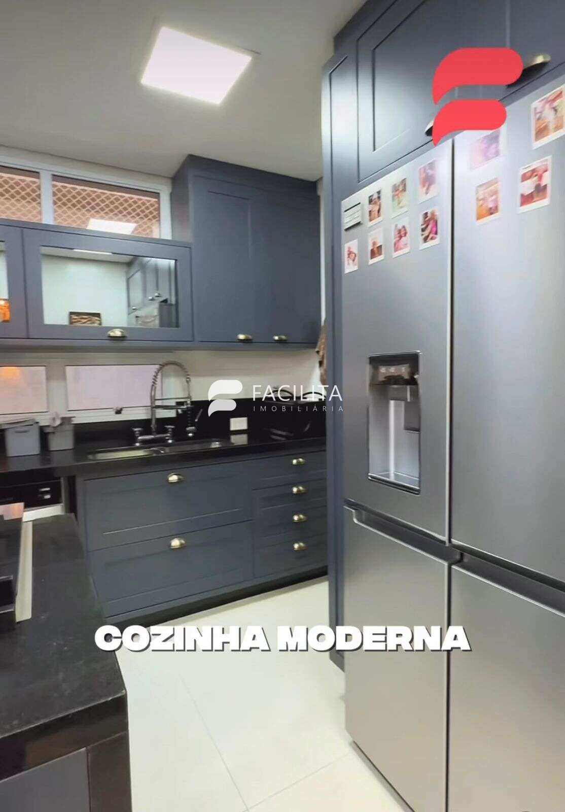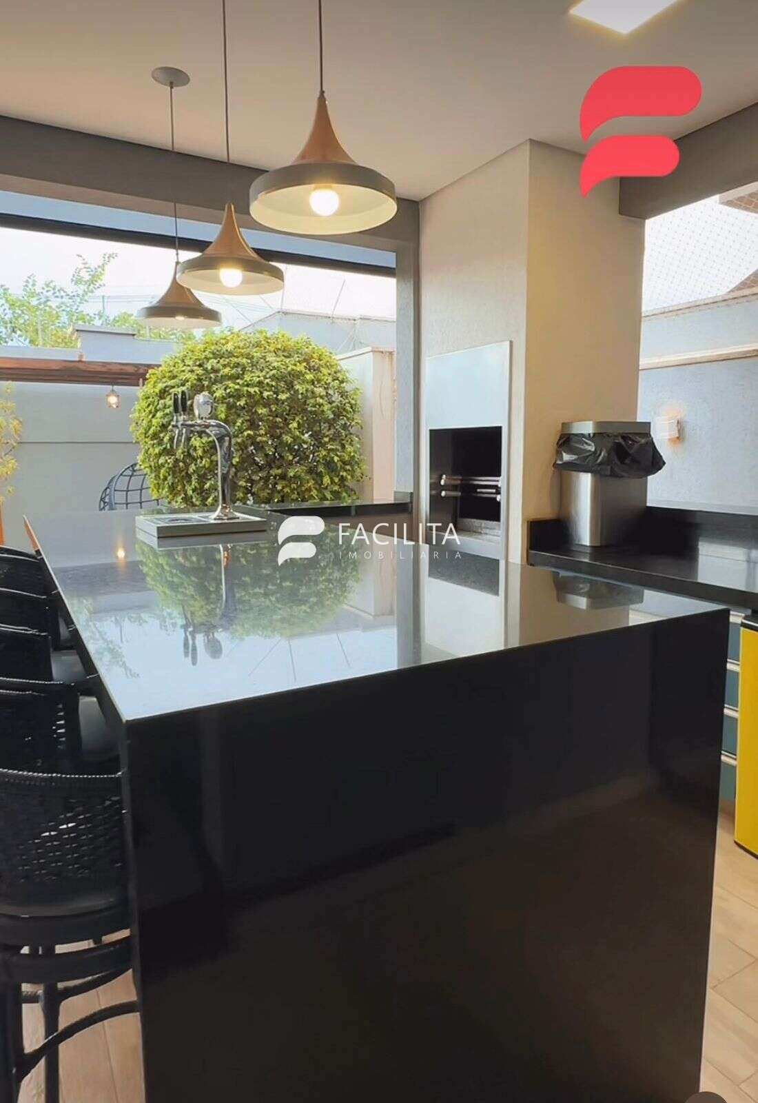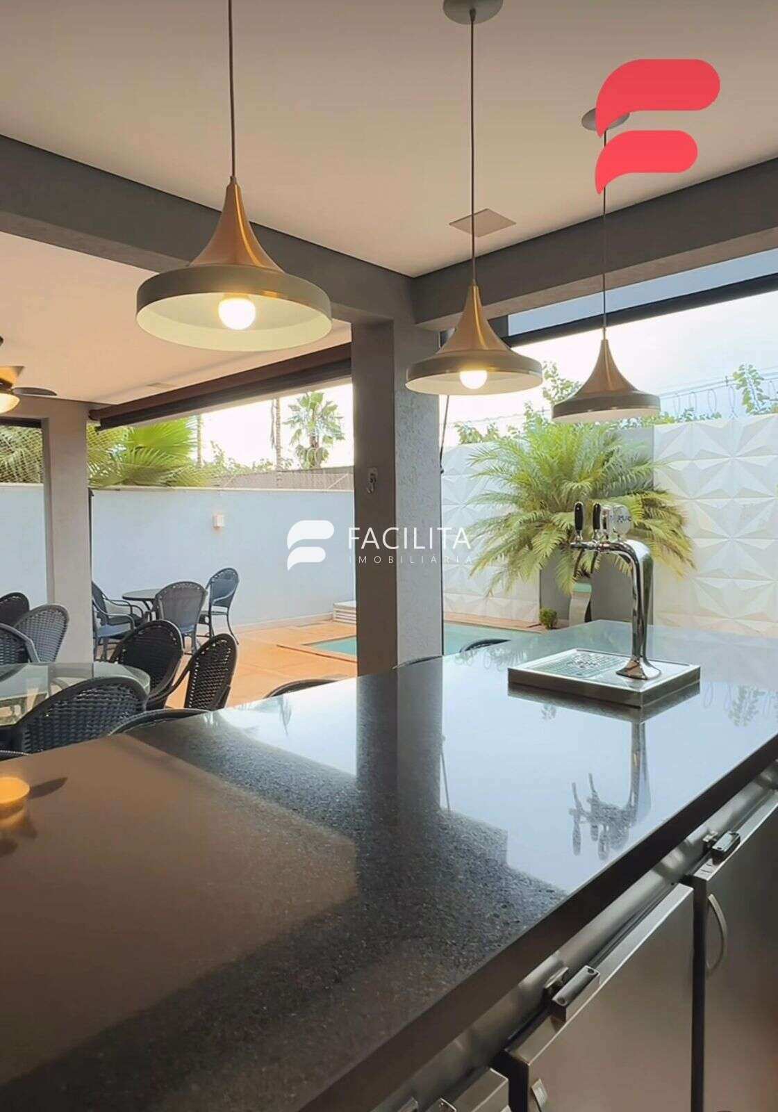 Sobrado com 3 Suítes no piso superior, e 01 suíte/escritório no piso térreo, sala para 2 ambientes com pé direito alto, cozinha separada com armarios modernos e novos, forno e cooktop, espaço para máquina de lavar louças, despensa, lavanderia e wc, varanda gourmet com chopeira, piscina aquecida, jardim com gazebo para balanço, vestiário. Ambientes climatizados, cortinas, fotovoltaica. 04 vagas de garagens.